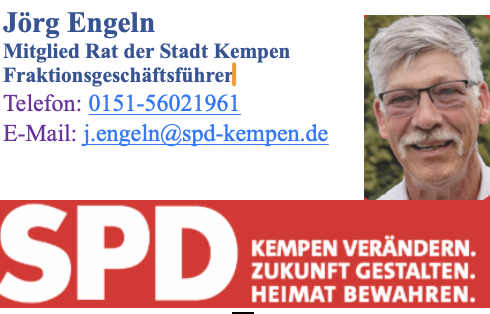 Für die kommende Legislaturperiode hat mich die SPD Fraktion im Rat der Stadt Kempen zum Fraktionsgeschäftsführer ernannt.